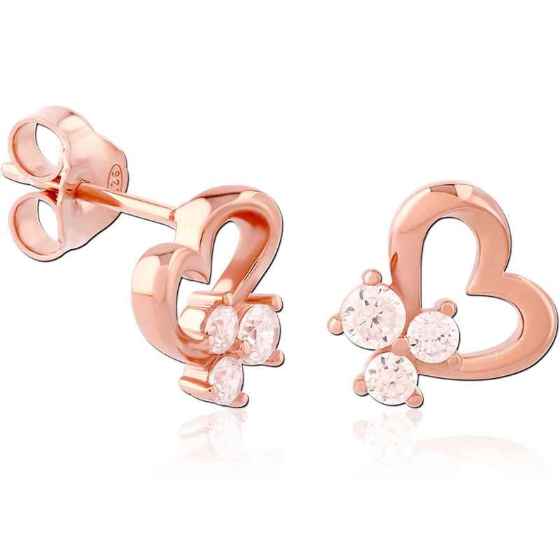 STERLING SILVER 925 ROSE GOLD PLATED JEWELED EAR STUDS PAIR