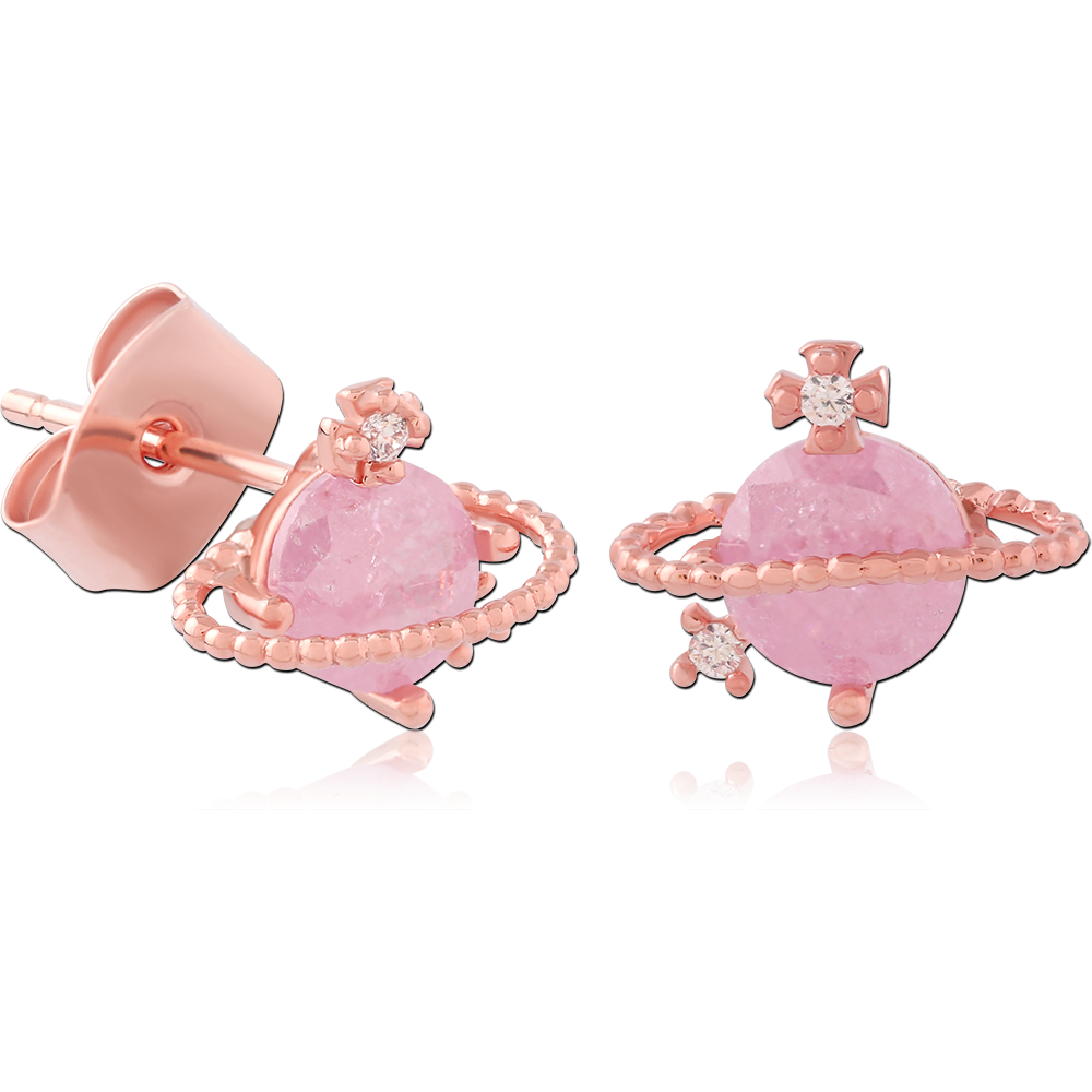 STERLING SILVER 925 ROSE GOLD PLATED JEWELED EAR STUDS PAIR