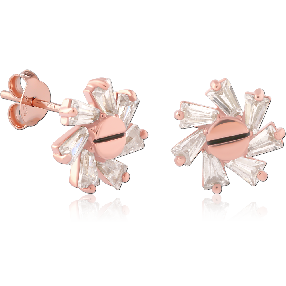 STERLING SILVER 925 ROSE GOLD PLATED JEWELED EAR STUDS PAIR