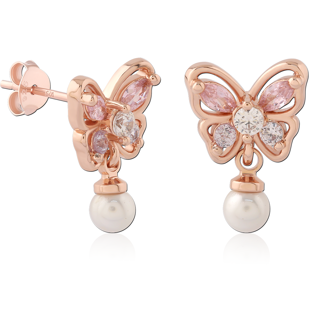 STERLING SILVER 925 ROSE GOLD PLATED JEWELED EAR STUDS PAIR