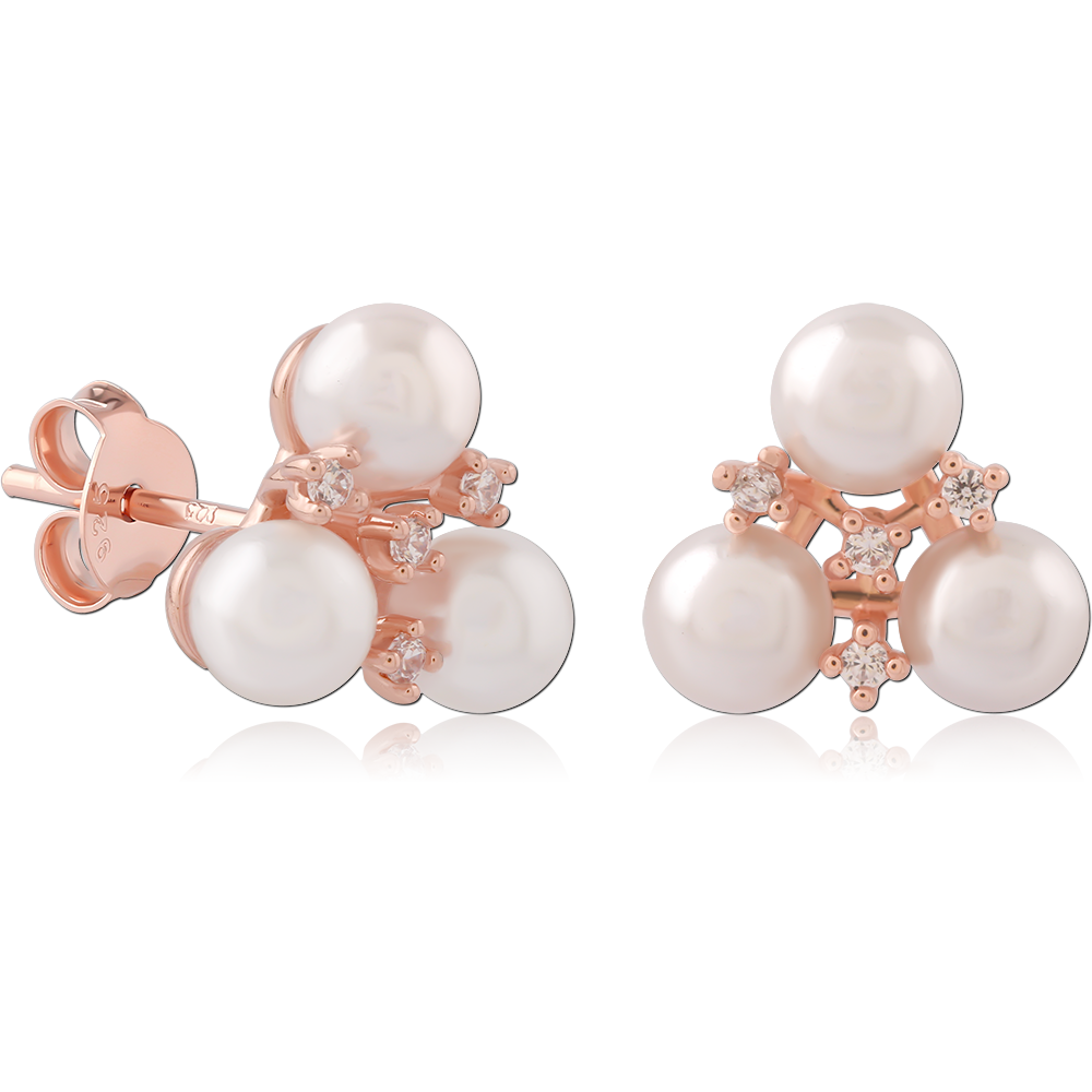 STERLING SILVER 925 ROSE GOLD PLATED JEWELED EAR STUDS PAIR