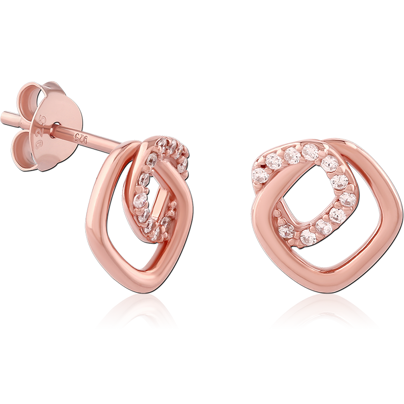 STERLING SILVER 925 ROSE GOLD PLATED JEWELED EAR STUDS PAIR