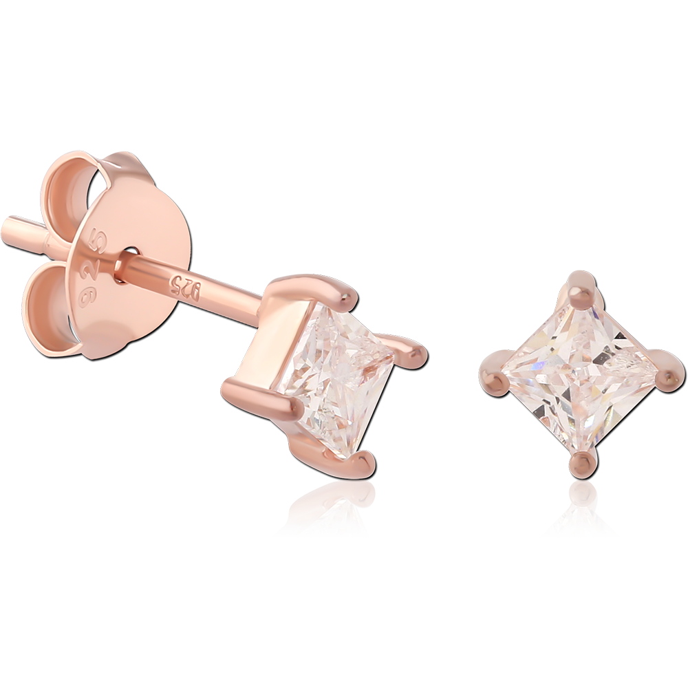 STERLING SILVER 925 ROSE GOLD PLATED JEWELED EAR STUDS PAIR