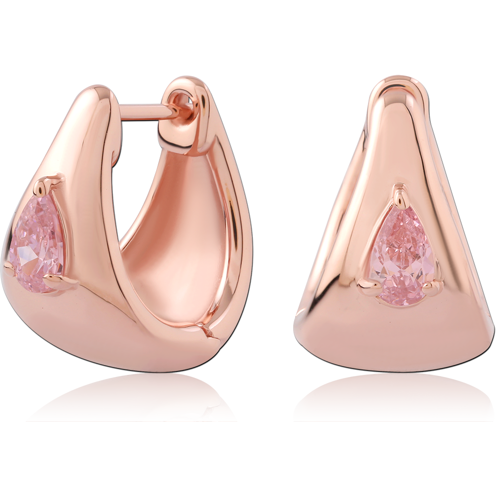 STERLING SILVER 925 ROSE GOLD PLATED JEWELED HUGGIES PAIR