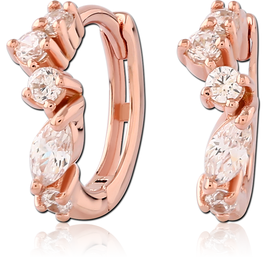 STERLING SILVER 925 ROSE GOLD PLATED JEWELED HUGGIES PAIR