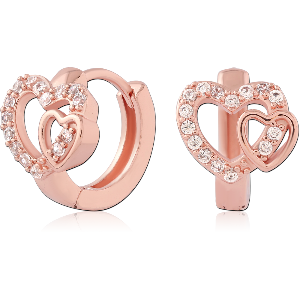 STERLING SILVER 925 ROSE GOLD PLATED JEWELED HUGGIES PAIR