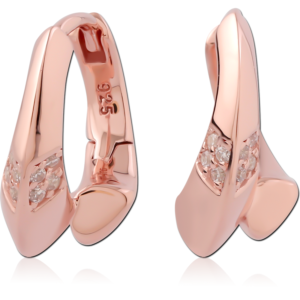 STERLING SILVER 925 ROSE GOLD PLATED JEWELED HUGGIES PAIR