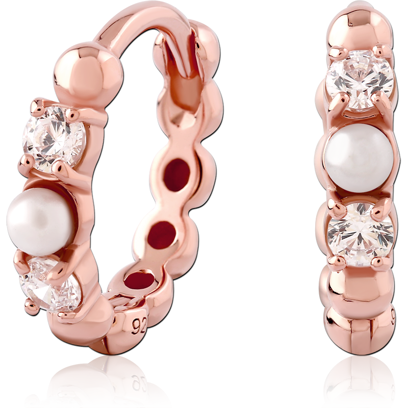 STERLING SILVER 925 ROSE GOLD PVD COATED JEWELED HUGGIES PAIR