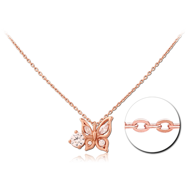 STERLING SILVER 925 ROSE GOLD PLATED JEWELED NECKLACE WITH PENDANT