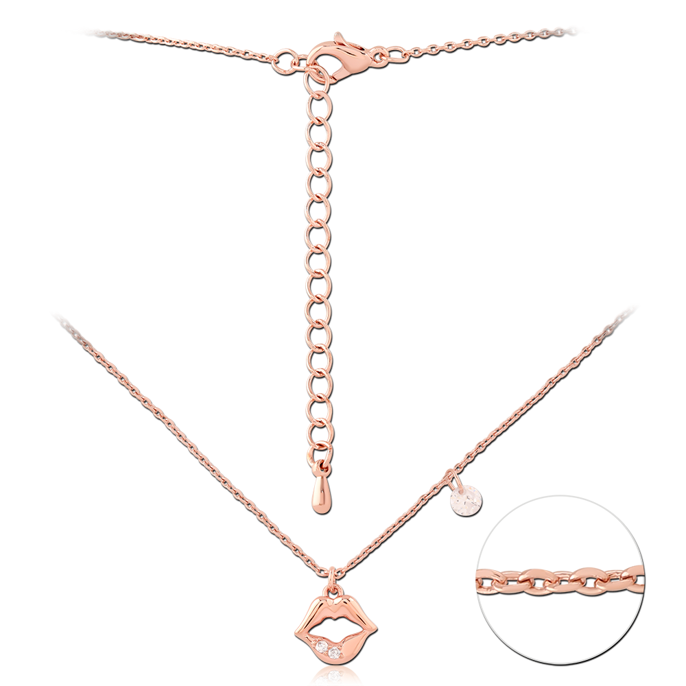 STERLING SILVER 925 ROSE GOLD PLATED JEWELED NECKLACE WITH PENDANT
