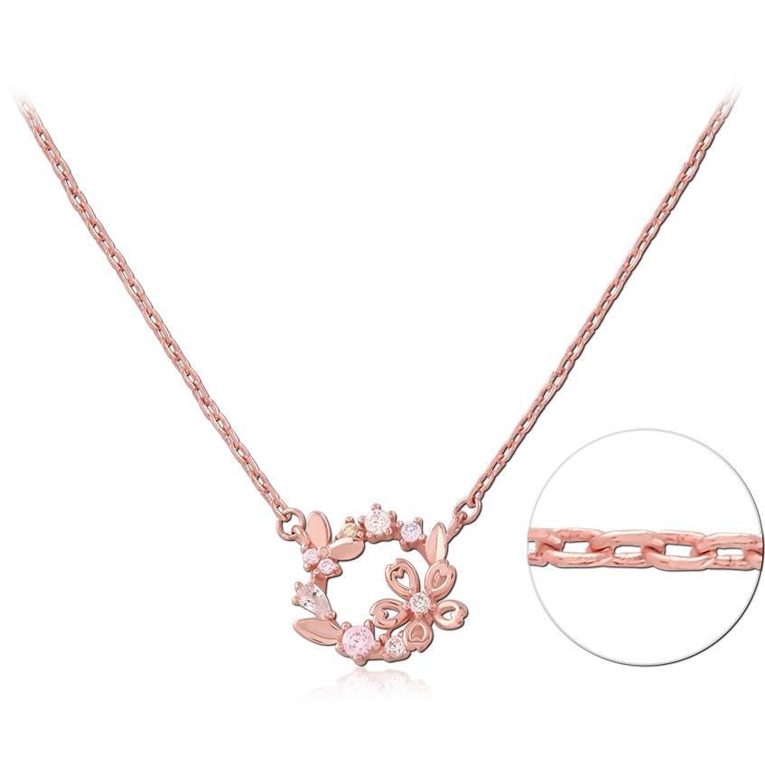 STERLING SILVER 925 ROSE GOLD PLATED JEWELED NECKLACE WITH PENDANT