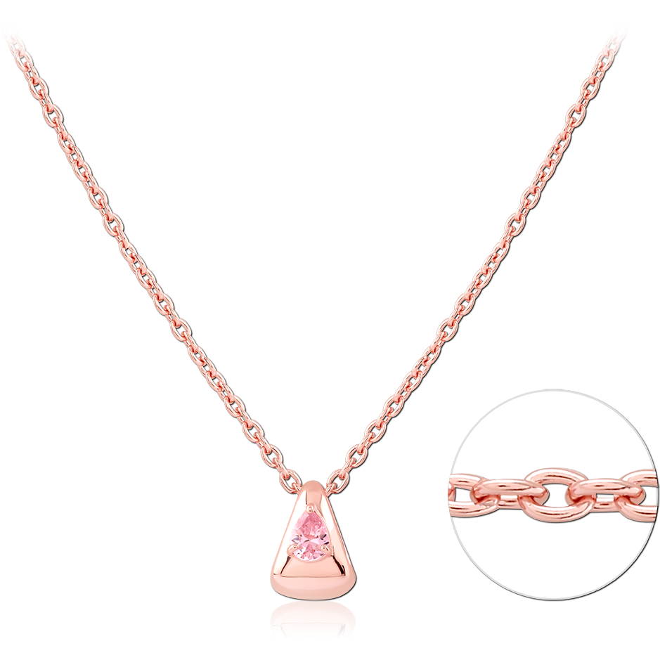 STERLING SILVER 925 ROSE GOLD PLATED JEWELED NECKLACE WITH PENDANT