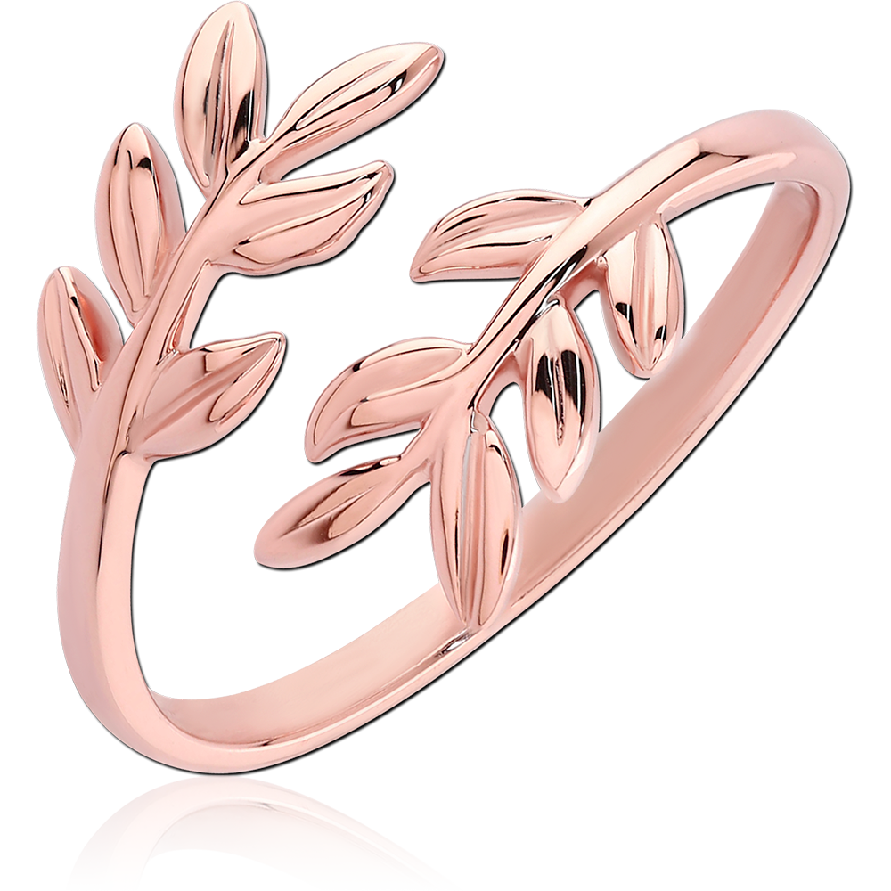 STERLING SILVER 925 ROSE GOLD PVD COATED OPEN RING – LEAF