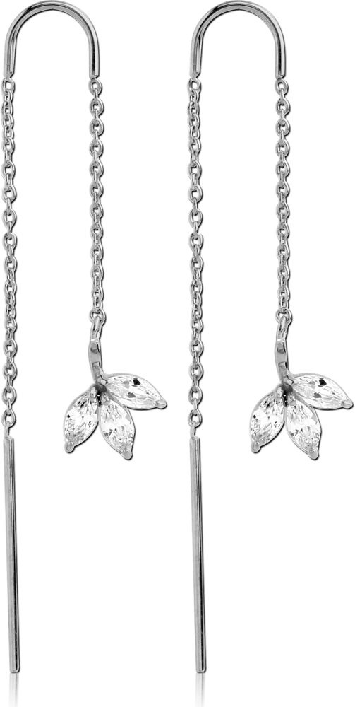 SURGICAL STEEL CHAIN JEWELED EARRINGS PAIR – LEAF