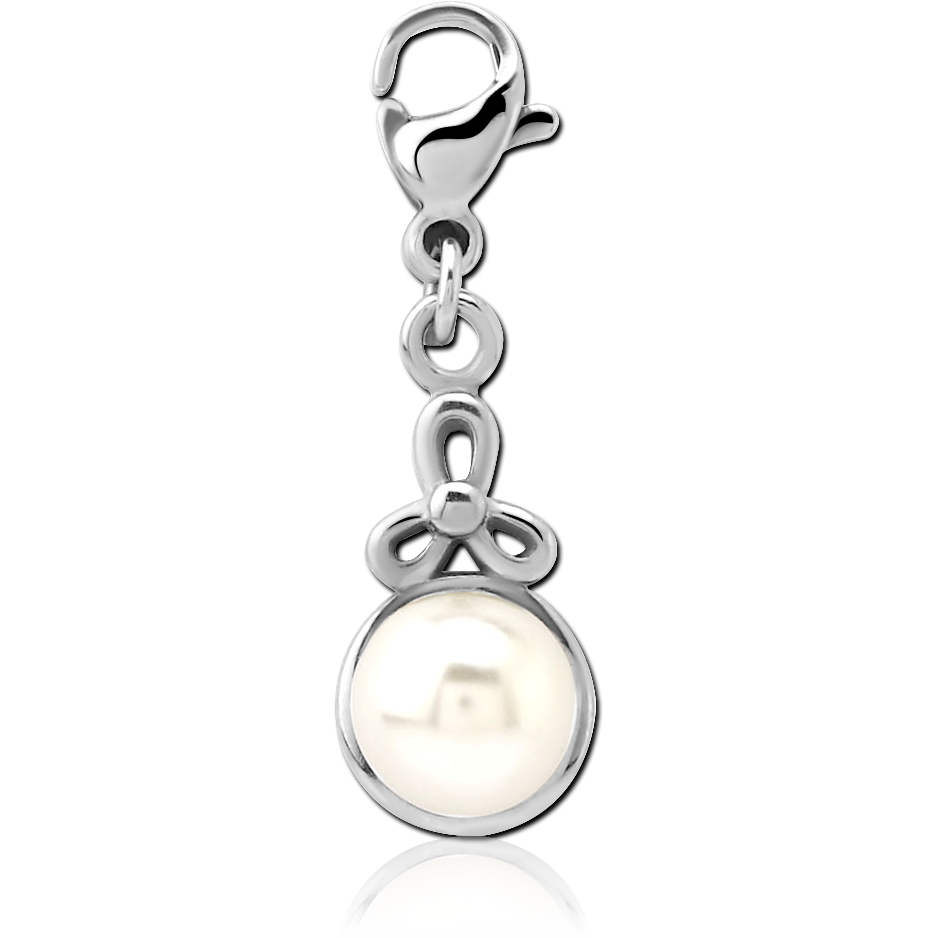 SURGICAL STEEL CHARM WITH LOBSTER LOCKER SYNTETIC PEARL