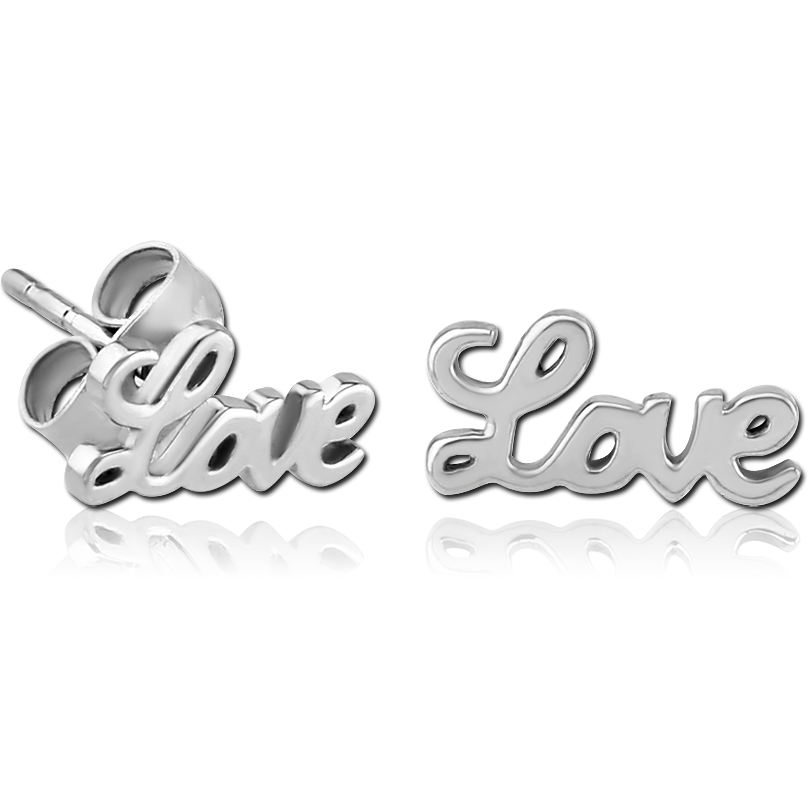 SURGICAL STEEL EAR STUDS PAIR – LOVE