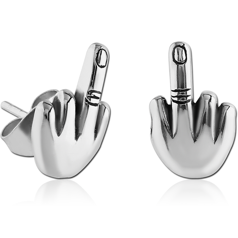 SURGICAL STEEL EAR STUDS PAIR – MIDDLE FINGER