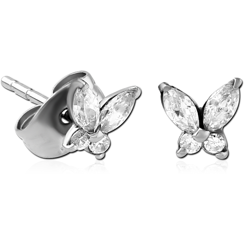 SURGICAL STEEL JEWELED EAR STUDS PAIR – BUTTEFLY