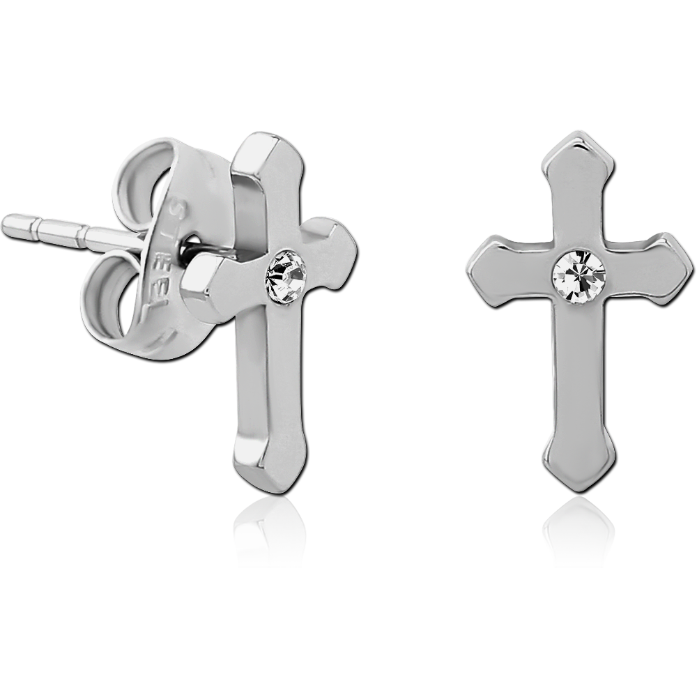SURGICAL STEEL JEWELED EAR STUDS PAIR – CROSS