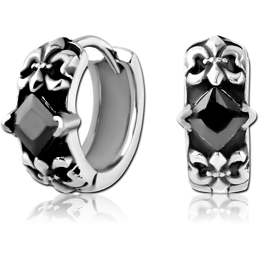 SURGICAL STEEL JEWELED HUGGIES PAIR – FLEUR DE LIS