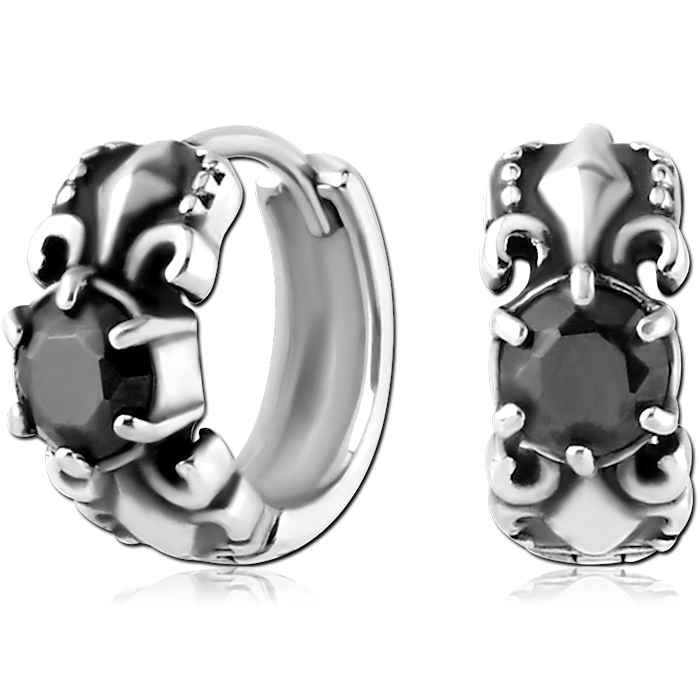 SURGICAL STEEL JEWELED HUGGIES PAIR – FLEUR DE LIS