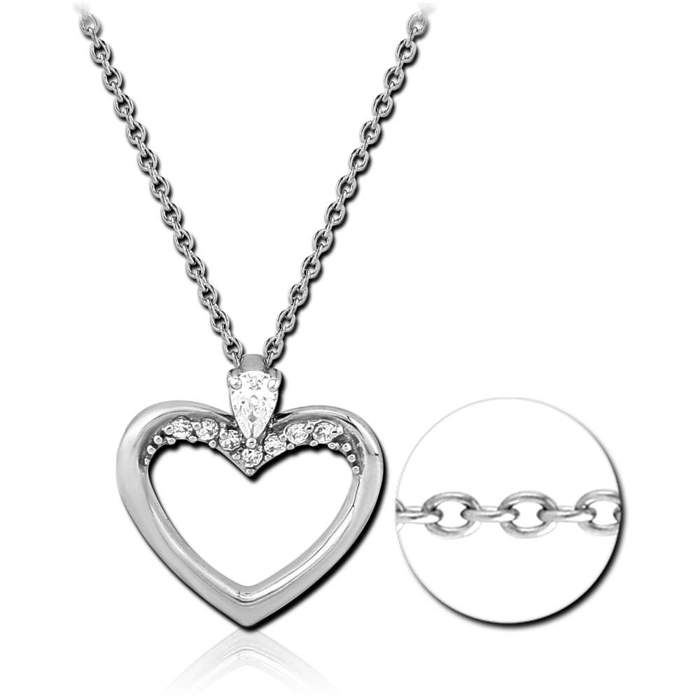 SURGICAL STEEL JEWELED NECKLACE WITH PENDANT – HEART