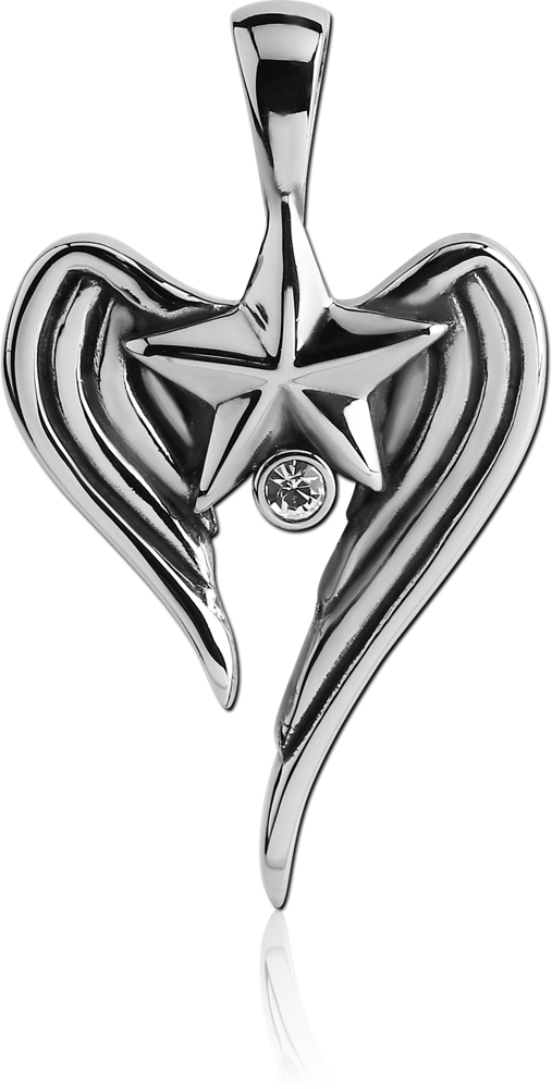 SURGICAL STEEL JEWELED PENDANT – STAR WITH WINGS