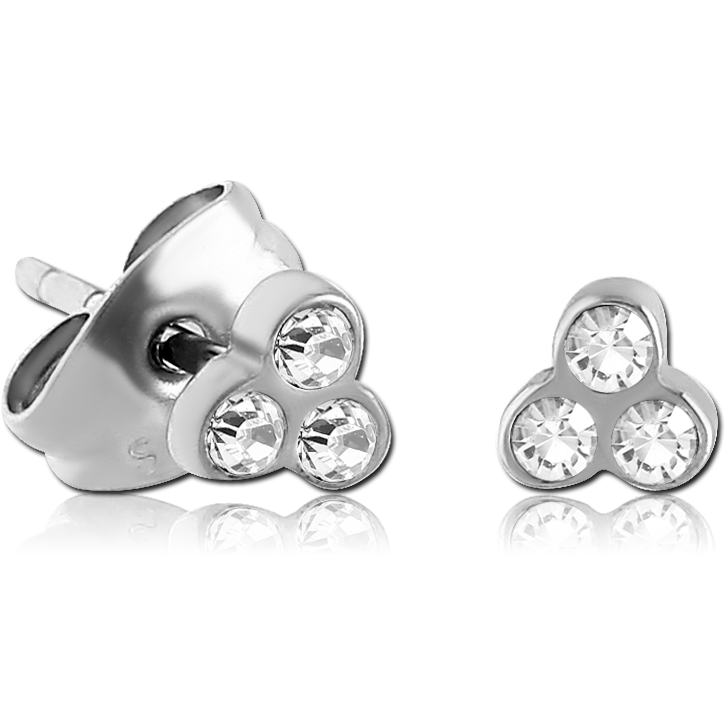 SURGICAL STEEL PREMIUM CRYSTAL TRINITY JEWELED EAR STUDS PAIR