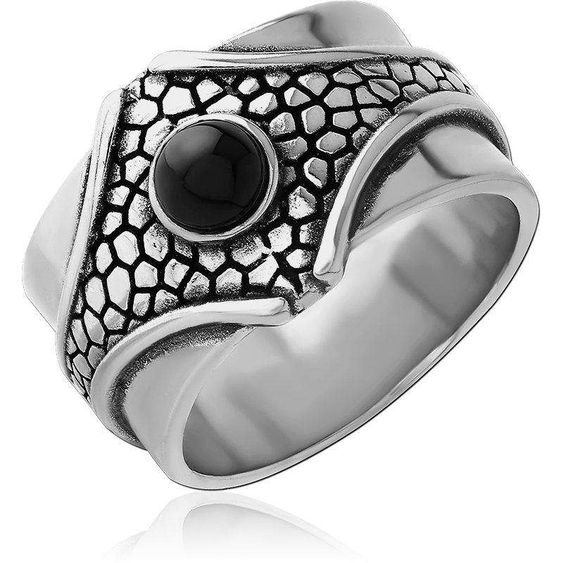 SURGICAL STEEL RING WITH ONYX – WIDE BAND EYE