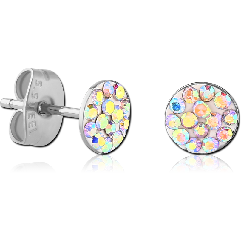 SURGICAL STEEL VALUE JEWELED ROUND EAR STUDS PAIR