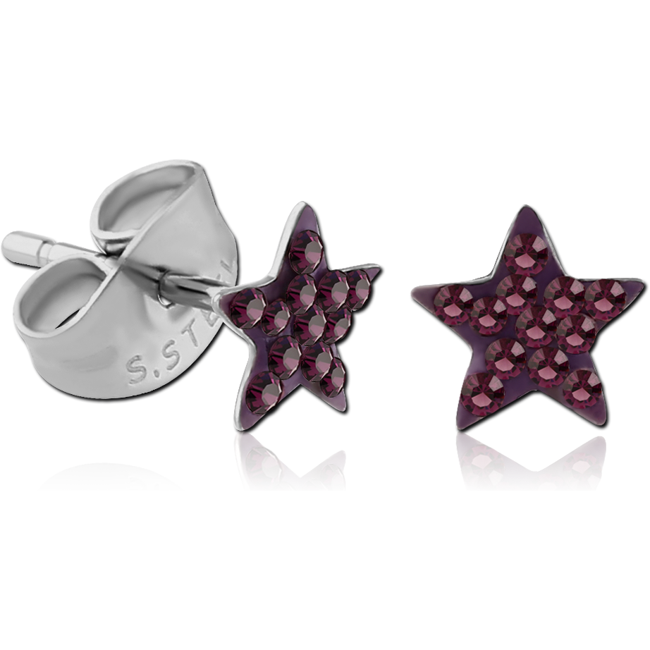 SURGICAL STEEL VALUE JEWELED STAR EAR STUDS PAIR